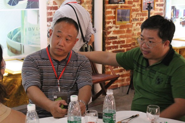 凤凰网家居频道、华夏陶瓷网的负责人与韩总交谈。