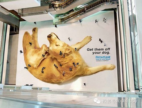 铺设在商场地面的广告,狗狗身上的跳蚤从哪来?呶,走过的行人自动变身为“小跳蚤”,而且不断变换、源源不断,当然,你得站在楼上看。